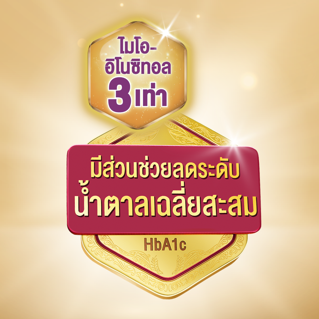 มีงานวิจัยหลายฉบับที่พบว่า ไมโอ-อิโนซิทอล มีบทบาทในการส่งเสริมกระบวนการทำงานของอินซูลิน และมีส่วนช่วยให้เซลล์ตอบสนองต่ออินซูลินได้ดีขึ้น ส่งผลให้การควบคุมระดับน้ำตาลในเลือดและระดับน้ำตาลสะสมมีแนวโน้มดีขึ้น นอกจากนี้ยังมีผลงานวิจัยที่พบว่า การเลือกเสริมด้วยอาหารทางการแพทย์สำหรับผู้ป่วยเบาหวาน สูตร 3x ไมโอ ที่มีไมโอ-อิโนซิทอล 3 เท่า มีส่วนช่วยลดระดับน้ำตาลสะสม (HbA1c) ได้จริง เมื่อทานอย่างต่อเนื่อง ร่วมกับการดูแลสุขภาพด้านอื่นๆ*