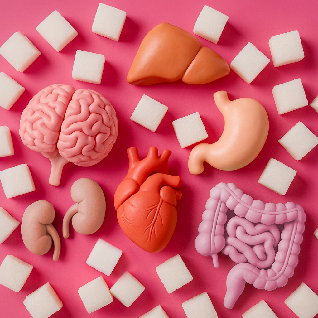 ยิ่งสะสมสูงนานๆ ความเสี่ยงยิ่งลุกลามและรุนแรง สิ่งที่น่ากังวลของโรคเบาหวานไม่ใช่เพียงแค่ระดับน้ำตาลที่สูงขึ้น แต่คือความเสียหายต่อหลอดเลือดและอวัยวะสำคัญทั่วร่างกาย ที่เกิดจากน้ำตาลสะสมในระยะยาว เช่น หัวใจและหลอดเลือด (เพิ่มความเสี่ยงโรคหัวใจ), ไต (เสี่ยงภาวะไตเสื่อม), สมอง (เพิ่มโอกาสเกิดโรคหลอดเลือดสมอง), ตับ (เสี่ยงไขมันพอกตับ), กระเพาะอาหารและลำไส้ (ระบบย่อยอาหารทำงานผิดปกติ) หรือแม้แต่ระบบประสาท (ชาปลายมือปลายเท้า) เป็นต้น ดังนั้นการควบคุมค่า HbA1c จึงไม่ใช่แค่การควบคุมระดับน้ำตาลในเลือด แต่ยังช่วยลดความเสี่ยงของภาวะแทรกซ้อนจากเบาหวานในระยะยาวด้วย